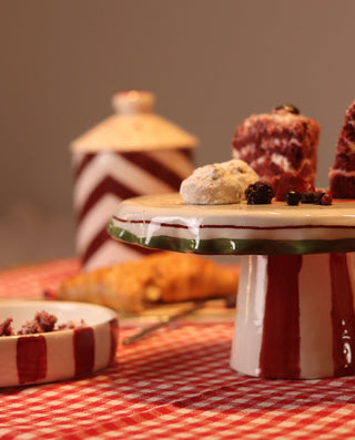 This handcrafted ceramic serving board brings joyful Christmas character to every table setting. Featuring bold red and green vertical stripes, each piece is made individually, ensuring a unique artisan finish. Ideal for serving cheese, charcuterie, biscuits, or holiday sweets. The design includes a hanging hole for easy display and storage. Durable stoneware construction suitable for everyday use and seasonal gifting.