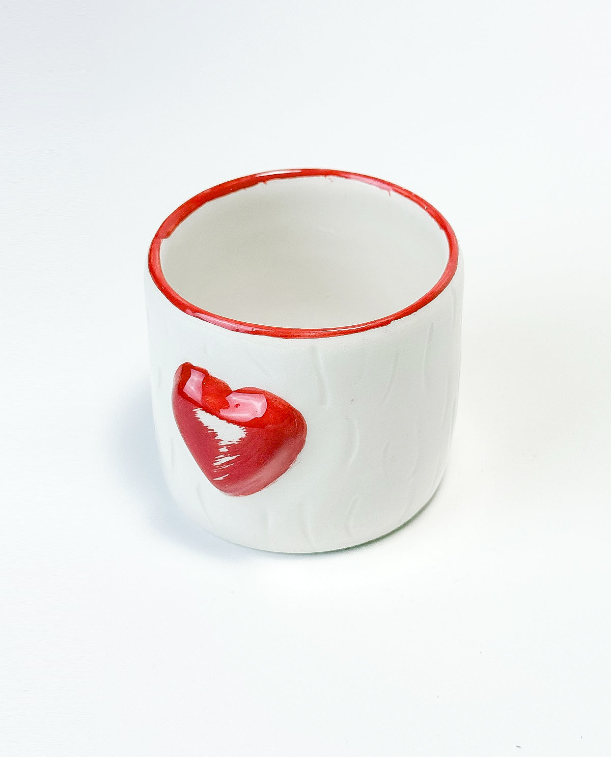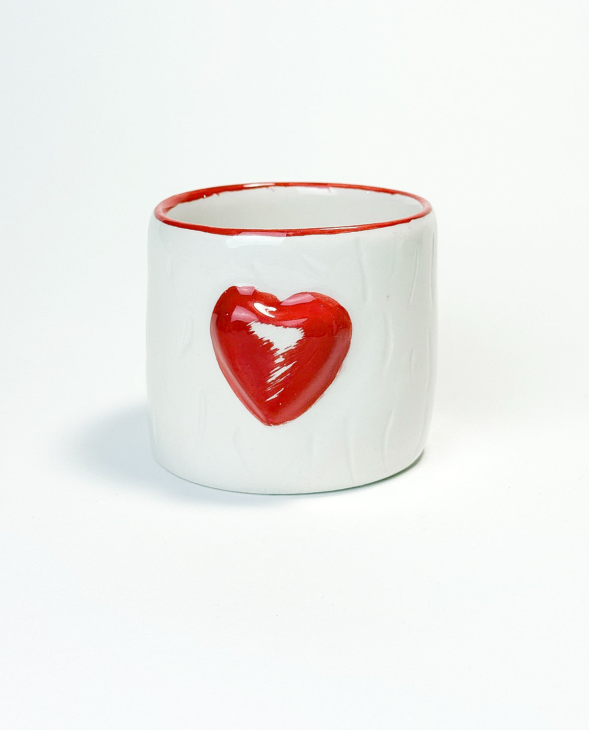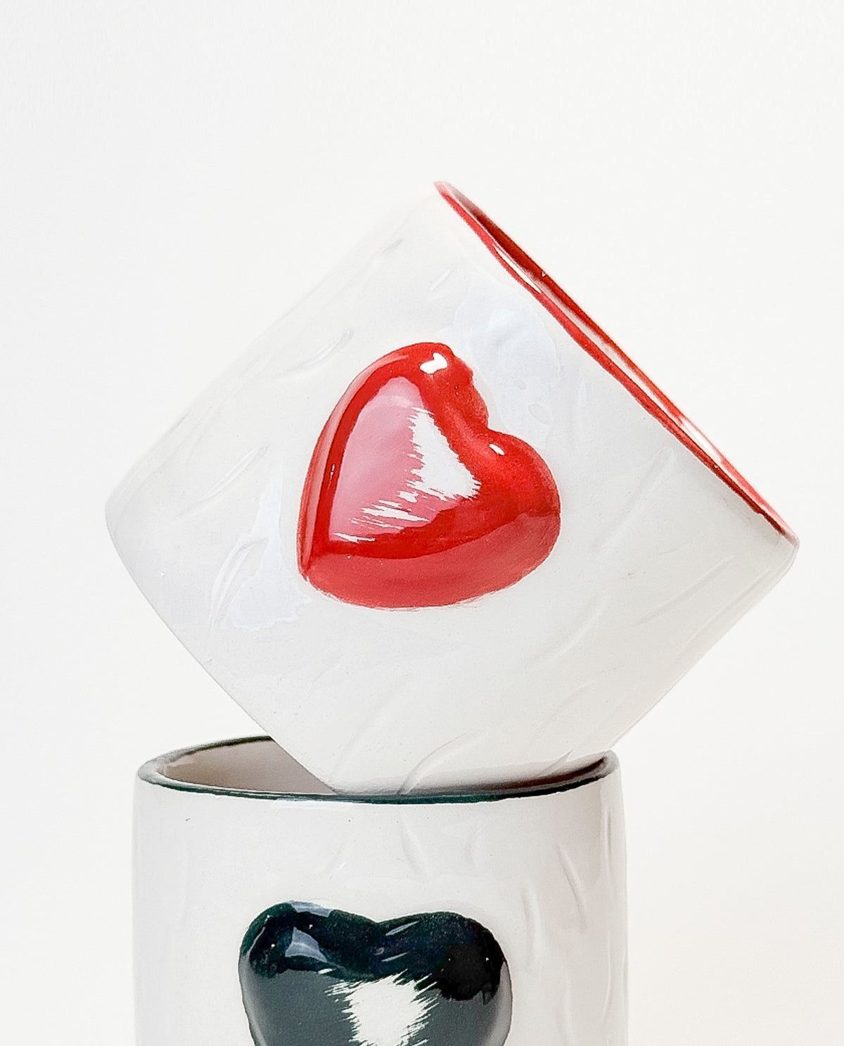 Start or end your day with a whole lot of love! This mug has been skillfully handcrafted and hand painted. The special highlight is the embossed heart. Whether you're fueling up with coffee or winding down with tea (or a cocktail), this mug brings charm and joy to your daily routine. Share your love or enjoy it by yourself...